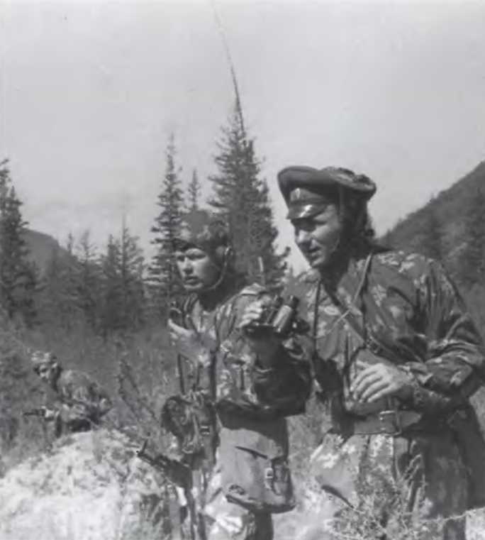 Командир разведывательного подразделения лейтенант Н. Топорков и радист ефрейтор Д. Овсянкин на тактических учениях Сибирского военного округа (1976 год).