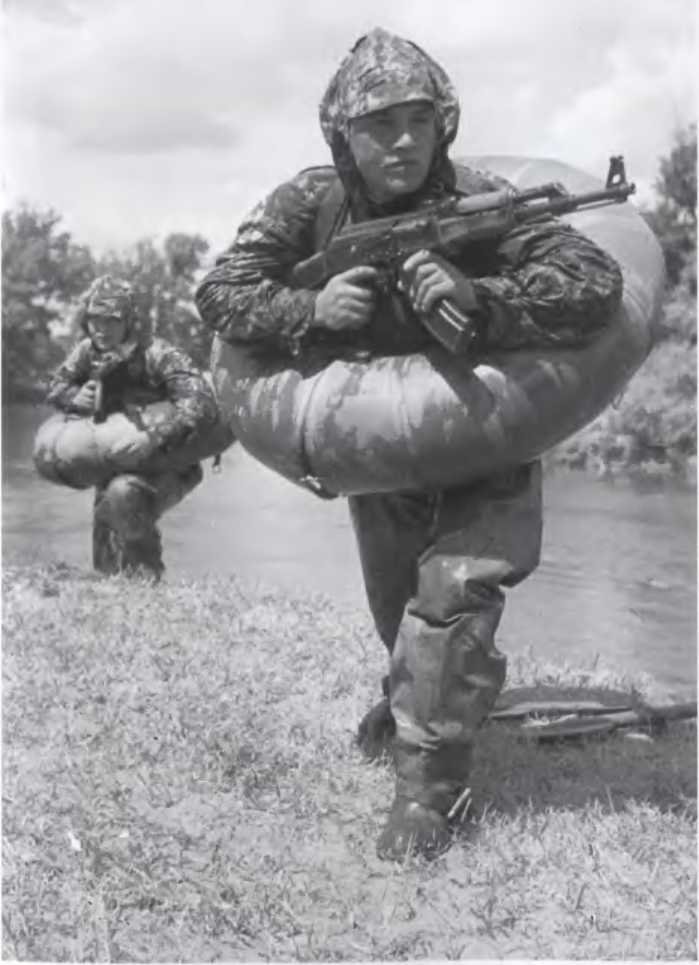 Бойцы разведывательной роты отдельного разведывательного батальона дивизии Советской Армии переправляются через ручей на тактических учениях (1975 год).