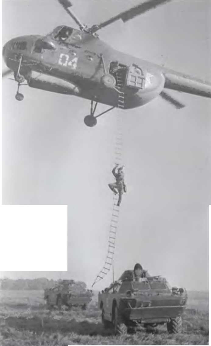 Боец разведывательной роты поднимается на борт вертолета для передачи донесения в штаб (1970 год).