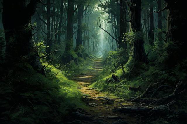 Лес вокруг стоял древний, вековой. В его родных краях таких древних лесов, считай, и не осталось больше. Серый неторопливо рысил в голове каравана, и с интересом посматривал по сторонам. Они и раньше шли лесами вдоль берега Синеглазки, но здешний лес выглядел каким-то особенно внушительным. Могучие деревья кланялись путешественникам по обеим сторонам дороги, сомкнув над головами плотные широкие кроны. Солнечный свет почти не проходил сквозь них, создавая волшебное сумеречное свечение. Вдоль обочины громоздились непролазные заросли в два человеческих роста: спутанное переплетение подлеска, кустарника и высокой травы. Слышались крики птиц. Время от времени встречались маленькие звериные тропки, но больше ничего не нарушало торжественной неприступности стены леса. Палая листва заглушала стук копыт.