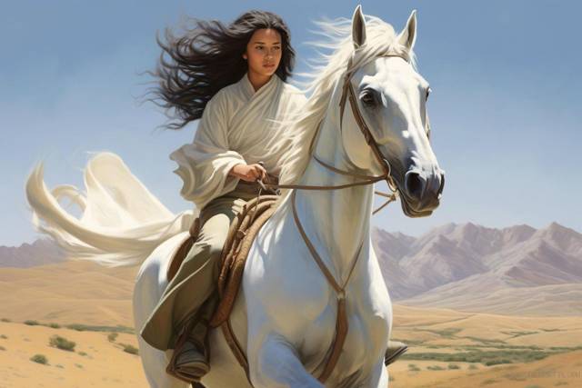 К удивлению кочевников, белый конь бежал все быстрее, и быстрее, отчетливо отрываясь от преследователей. Несколько всадников попытались пересечь им путь, отчаянно нахлестывая лошадей, но и они остались позади.