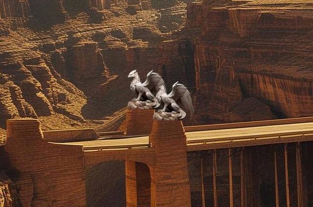 Ящеры остановились, не доходя до противоположного конца моста, развернулись, и неторопливо потрусили обратно на свою сторону. Грифон проводил их взглядом и привстал на задние лапы, словно разглядывая проезжих. Стоя, он оказался довольно высокий, явно повыше человека. Серый остановился, повернулся и неожиданно для себя низко поклонился, коснувшись гривой земли. Крылатый зверь снова – теперь уже однозначно – кивнул в ответ и приподнял одно крыло. Затем он посмотрел на обезглавленного напарника и уши его поникли. Более не делая жестов, грифон запрыгнул обратно на постамент, сел, уложив львиный хвост, и замер – каменной, полностью неподвижной статуей.