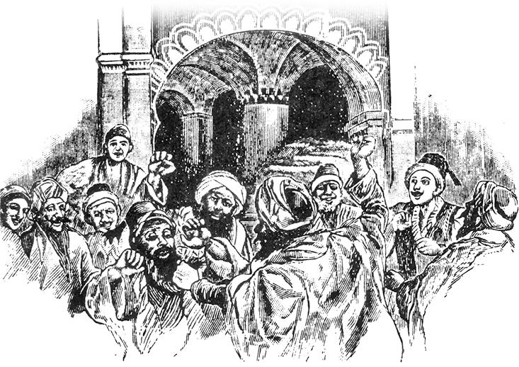Его потащили. К ним присоединилась огромная вереница всякого рода людей, кричавшая: «Глядите, вот красивый приказчик с базара! Он обокрал своего хозяина и убежал! Он украл двести золотых!»