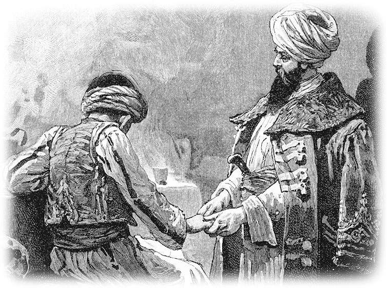 – Вы, может быть, думаете, – отвечал он, – что Али Бану празднует большой весёлый праздник или его дом удостаивает посещением великий человек? Это не так, но сегодня, как вы знаете, двенадцатый день месяца рамадана, а в этот день его сына увели в лагерь франков.