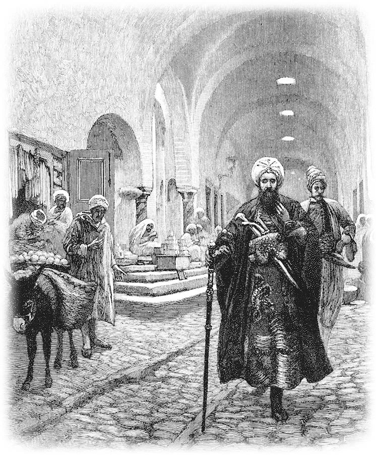 Александрийский шейх Али Бану был странным человеком. Когда он утром шёл по городским улицам, обвитый чалмой из прекраснейшего кашемира, в праздничном платье и богатом поясе, стоившем пятьдесят верблюдов, когда он шёл медленным, величественным шагом, мрачно наморщив лоб, нахмурив брови, опустив глаза и через каждые пять шагов задумчиво поглаживая свою длинную, чёрную бороду; когда он шёл так в мечеть, чтобы читать верующим поучения о Коране, как этого требовал его сан, люди на улице останавливались, смотрели ему вслед и говорили друг другу: «Вот прекрасный, представительный человек». – «И богатый, богатый человек, – прибавлял, конечно, другой. – Ведь у него дворец в гавани Стамбула! Ведь у него поместья, поля, много тысяч голов скота и много рабов!» – «Да, – говорил третий, – и татарин, который недавно прислан к нему из Стамбула, от самого султана – да благословит его Пророк! – говорил мне, что наш шейх пользуется большим уважением у рейс-эфенди[28], у капиджи-паши[29], у всех, даже у самого султана». – «Да, – восклицал четвёртый, – его шаги благословенны! Он богатый, знатный человек, но… но… вы знаете, что я подразумеваю!» – «Да, да! – бормотали при этом другие. – Это правда, и у него есть своё горе, мы не хотели бы быть на его месте. Он богатый, знатный человек, но… но…»
