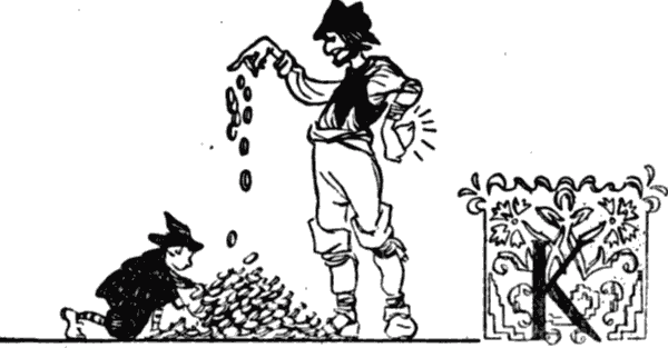 Михель пошел вперед и провёл его к себе в дом; там он открыл сундук, в котором находилось множество денег, и вытащил оттуда большие свертки золотых монет. Пока он считал их на столе, Петер сказал: