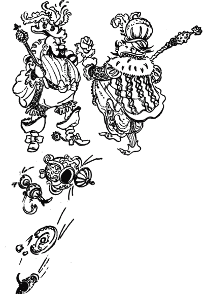– Пришло время показать мне твою верную службу и твое искусство. Монарх, который гостит у нас, как известно, кушает лучше всех, кроме меня; он большой знаток изысканной кухни и мудрый правитель. Позаботься же, чтобы ежедневно мой стол был уставлен яствами, от которых удивление его все возрастало бы. При этом, под угрозой моей немилости, не моги, покуда он здесь, два раза подавать одно и то же блюдо. Зато разрешаю тебе требовать от моего казначея все, что тебе угодно. Бери даже золото и алмазы, буде тебе понадобится поджарить их в сале. Я соглашусь лучше стать бедняком, чем краснеть перед ним. – Так сказал герцог. Карлик же учтиво поклонился и молвил:
