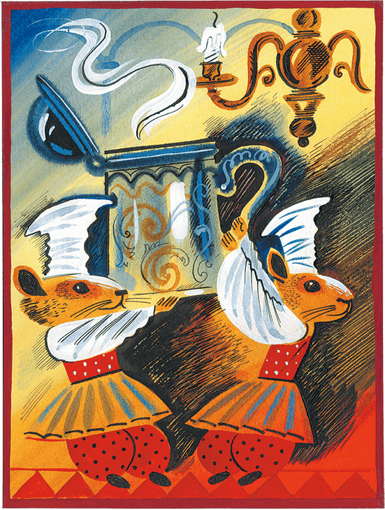 Старуха приложила к губам маленький серебряный свисток и как-то по-особенному, раскатисто, свистнула – так, что свисток затрещал на весь дом. И сейчас же по лестнице быстро сбежали вниз морские свинки – совсем необыкновенные морские свинки, которые ходили на двух лапках. Вместо башмаков у них были ореховые скорлупки, и одеты эти свинки были совсем как люди – даже шляпы не забыли захватить.