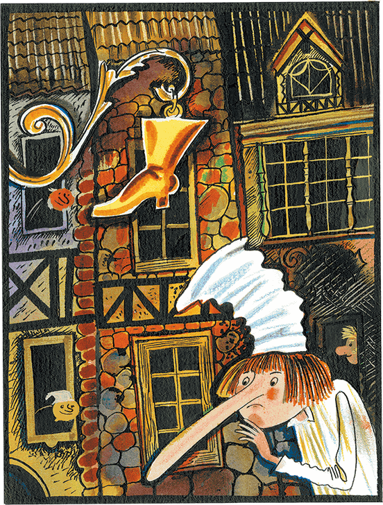 – Куда вы девали мои туфли, негодницы! – закричала старуха и так ударила свинок палкой, что они с визгом подскочили. – Долго ли я ещё буду здесь стоять?..