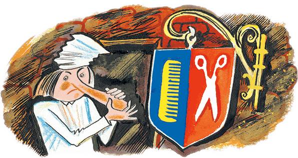 Увидев Якоба, смотритель сделал страшную гримасу и как можно плотнее сжал губы, чтобы не рассмеяться, – важность не позволяла ему хохотать перед конюхами. Он разогнал собравшихся своей плёткой и, взяв Якоба за руку, ввёл его во дворец и спросил, что ему нужно. Услышав, что Якоб хочет видеть начальника кухни, смотритель воскликнул: