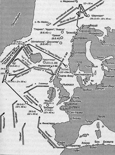 Когда «Гнейзенау» и «Шарнхорст» вышли из ремонта, штаб оперативного руководства войной на море принял решение использовать оба линкора для действий на морских коммуникациях противника в Атлантическом океане. К этому времени упорная борьба с торговыми судами противника на всех морях и океанах принесла немцам определенные успехи. В ней наряду с подводными лодками участвовали броненосец «Адмирал Шеер», тяжелый крейсер «Адмирал Хиппер» и целый ряд вспомогательных крейсеров. Данный вид боевых действий вполне соответствовал общей обстановке на море: удары наносились по тыловым коммуникациям державы, владения которой разбросаны по всему миру. Они заставляли Англию распылять свои силы и средства по всем морям и океанам. Для защиты торгового судоходства в Атлантике англичане были вынуждены выделять не только мелкие боевые корабли, но даже линкоры и крейсеры наряду с огромным количеством авиации. Это приводило к тому, что на многих театрах военных действий англичане стали испытывать острую нехватку в кораблях и самолетах. Вначале это случилось на Средиземном море, а затем и на Дальнем Востоке. Не хватало англичанам и боевых средств для организации решительной борьбы с немецкими и итальянскими подводными лодками.