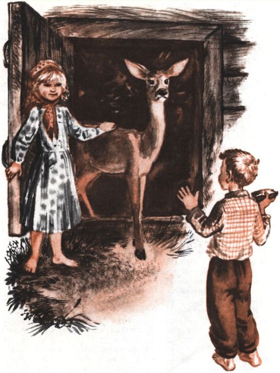И только входя во двор, Йожко заметил, что у гусенка правое крыло как-то отвисло. И всем тельцем он клонился в правую сторону, словно крыло тянуло его к земле. Позже, когда у него совсем побелели перья, заметила это и мама. Йожко молчал. Но по осени, когда мама сажала всех гусей в клетки, он попросил ее оставить гусочку на воле – пусть, мол, яйца несет. Кособеня снесла двенадцать яиц, и изо всех двенадцати вылупились гусята.