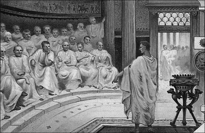 Катон выступает перед римским сенатом. Рисунок XIX в.