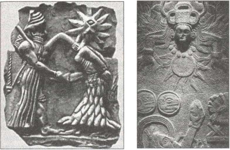 Имеются и другие подтверждения о грандиозной космической «битве» между Солнцем и нейтронной звездой. В Иракском музее (г. Багдад) находится терракотовый рельеф, обнаруженный в Хафаджи (Месопотамия) и датируемый 2-м тысячелетием до н. э. (данный рельеф явно относится к более древнему времени), который изображает битву бога Солнца (слева) с одноглазым чудовищем – циклопом, то есть Тифоном.