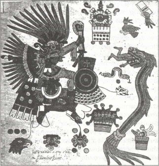 Рис. 70.Кодекс «Лауд». Битва бога Солнца со змеем