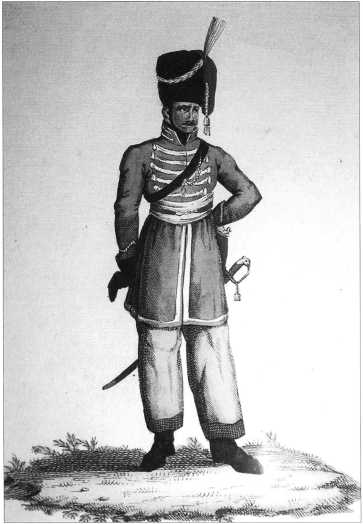 Приведенная картина А. Ежова, изображающая атаку карабинеров при Тарутино была написана в 2002 г. С тех пор прошло достаточно времени, появились новые материалы, освещающие данную тему, и нам хотелось бы внести ясность относительно униформы показанной на картине. Карабинеры изображены в небесно-голубых куртках, которые, следуя исследованиям А. Русело, являются «второй формой». При создании данной иллюстрации мы руководствовались работами П. Бениньи, Л. Русело и изобразительными источниками X. Фабер дю Фора. Некоторая часть которых приведена на стр. 38, 39, 90 и 91 данной книги. Однако, Д. Горшков, в своей статье «Униформа карабинеров», опубликованной в журнале Воин № 1 за 2005 г. убедительно доказал возможность ношения небесно-голубых сюртуков лишь офицерским и унтер-офицерским составом. Благодаря этой работе, и многочисленным консультациям Д. Горшкова мы, пересмотрев наше видение карабинерской униформы, подготовили новую картину (см. стр. 46–47), отображающую последние наработки в этой теме.