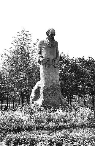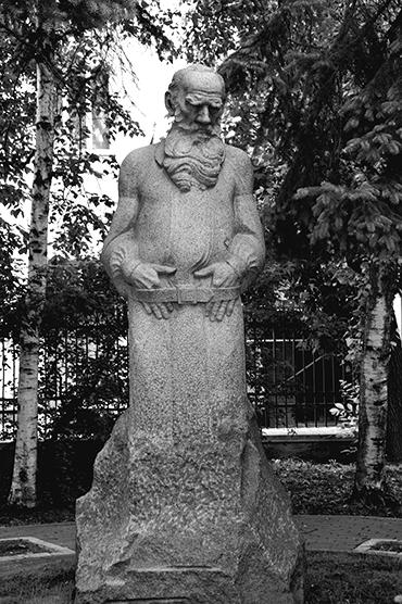 С. Д. Меркуров. Скульптура «Лев Толстой», гранит, 1911–1913. С 1927 по 1971 г. – Девичье поле, с 1972 г. – Государственный музей Л. Н. Толстого. Москва (ул. Пречистенка, 11)