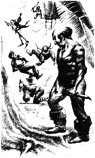 Обрадованный Рыжий Пёс оседлал одного из пиратов и протянул руку Юрке, который бесстрашно высовывался из пещеры.