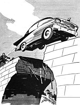 Через несколько минут к мосту подъехали королевские телохранители. Тормоза завизжали, машины остановились, и мужчины в шляпах высыпали на шоссе. Они тщательно обследовали провал, но, не обнаружив останков юной королевы, снова захлопали дверцами. Их машины выехали на зелёную пашню и неторопливо миновали опасное место.