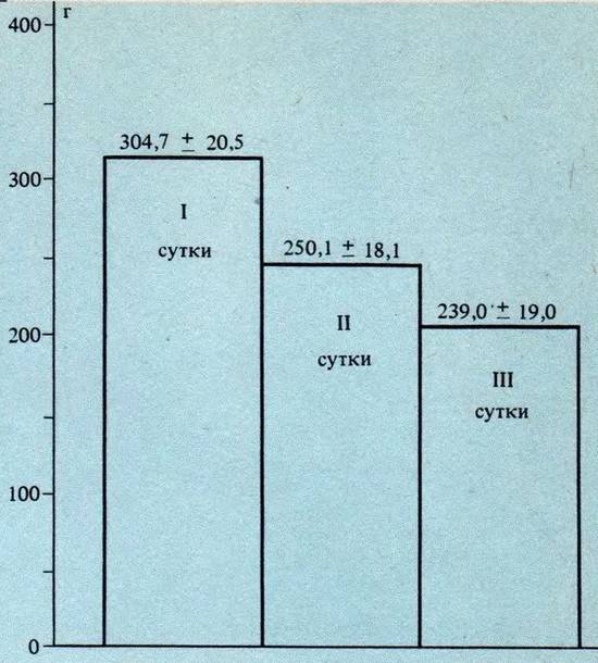 Рис. 75. Среднечасовое потоотделение (г/час) в разные сутки эксперимента