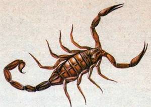 Серьезную опасность для человека представляют укусы ядовитых представителей класса паукообразных, которые «постоянно или временно содержат в своем теле вещества, вызывающие у человека отравления различной степени» (Павловский, 1931). К ним в первую очередь относится отряд скорпионов. Размер скорпионов обычно не превышает 5-15 см. Но, например, в северных лесах Малайского архипелага водятся гигантские зеленые скорпионы, достигающие 20-25 см (Уоллес, 1956). Внешне скорпионы напоминают небольшого рака с черным или буро-коричневым телом, с клешнями и тонким членистым хвостом с твердым изогнутым жалом на конце, в которое открываются протоки ядовитых желез (рис. 93). Яд скорпионов вызывает резкую местную реакцию: покраснение, отек, сильную болезненность. В некоторых случаях развивается общая интоксикация. Через 35-45 минут после ужаливания появляются коликообразные боли в языке и деснах, нарушается акт глотания, повышается температура, начинается озноб, нередко судороги, рвота (Султанов, 1956; Vachon, 1956).