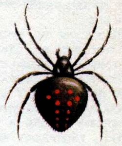 Но не ядовитых змей и скорпионов считают жители пустыни самой грозной опасностью, а маленького паучка каракурта (Lathrodectus tredecimgu ttatus (рис. 94). Яд некоторых видов этого членистоногого по силе токсического действия превышает в 15 раз яд страшной гремучей змеи (Талызин, 1970).