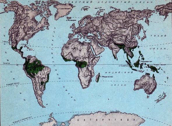 [Закрыть]. Джунгли занимают огромные территории Экваториальной Африки, Центральной и Южной Америки, Больших Антильских о-вов, Мадагаскара и юго-западного побережья Индии, полуостровов Индокитай и Малакка. Джунглями покрыты большие Зондские, Филиппинские о-ва, большая часть о. Новая Гвинея. Тропическими лесами занято около 60% площади Бразилии, 40% территории Вьетнама (Колесник, 1958; Сочевко, 1959).