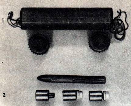На смену объемистым, тяжелым сигнальным ракетам пришли патроны-мортирки, запускаемые с помощью стреляющего механизма, размерами не больше «вечного пера» (рис. 10.2). Такой комплект состоит из десяти пятнадцатимиллиметровых сигнальных патрончиков-мортирок, уложенных в ленту-пантронташ. Для подачи сигнала кнопку курка стреляющего механизма заводят в верхний (предохранительный) вырез на корпусе. Затем, отвинтив предохранительный колпачок с патрончика, до отказа ввертывают его в нарезное гнездо стреляющего механизма. Во избежание ранения от случайного выстрела рука не должна перекрывать верхний срез мортирки. Ввернув патрон, кнопку курка переводят в нижний вырез, взводя боевую пружину. Теперь все готово к действию. Плотно сжав механизм в вытянутой вверх руке, большим пальцем отводят кнопку курка в сторону (влево). Выстрел – и мортирка, взлетев на 50-60 м, вспыхивает ярко-красной звездочкой.