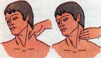 При сильном кровотечении из сосудов шеи и лица для его остановки сонную артерию прижимают к шейному позвонку по внутреннему краю грудинно-ключично-сосковой мышцы (рис. 18).