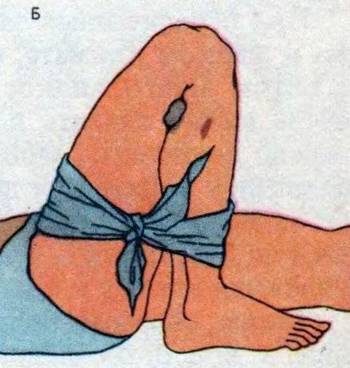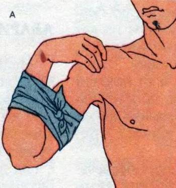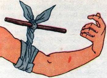 Рис. 19. Остановка кровотечения с помощью сгибания конечностей