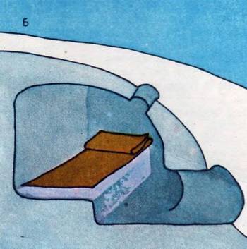 Надежным жилищем, а главное не требующим при строительстве особых физических усилий, может стать надувной спасательный плот, входящий в аварийный комплект многих летательных аппаратов. При самых скромных средствах обогрева (2 стеариновые свечи) в 25-градусный мороз можно поднять температуру воздуха внутри плота с минус 20° до плюс 1° (Westergaard, 1971). Температуру удается поддерживать еще более высокой, если плот дополнительно утеплить слоем снежных блоков.