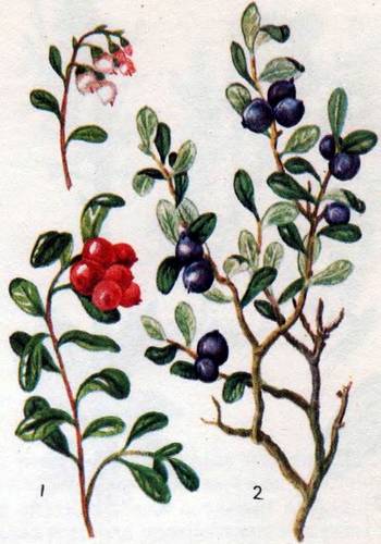 Рис. 32. 1– морошка, 2 – клюква болотная