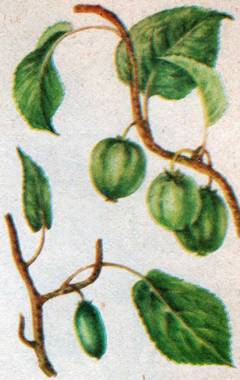 Актинидия (Actinidia kolomikta) – жительница дальневосточной тайги, которую называют амурским крыжовником, – длинноствольная лиана, обвивающая хвойные и лиственные деревья и стелющаяся по земле, образуя непроходимые препятствия (рис. 58). Ее плоды, созревающие к концу августа, похожие на вытянутые виноградины с нежной душистой мякотью, богаты витаминами. Так, в 100 г плодов содержится 980 мг аскорбиновой кислоты (Стрижев, 1966). Ее сородич – актинидия аргута (лиана с толстым, до 15 см, древовидным стволом) дает крупные съедобные плоды. А например, плоды актинидии джеральди достигают размера огурца.