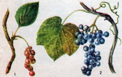 Рис. 64. 1 – Лимонник китайский, 2 – Виноград амурский