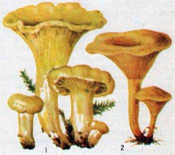 Рис. 63. 1 – Лисички, 2 – Ложные лисички