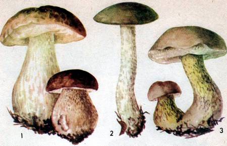 Рис. 65. 1 – Белый гриб, 2 – подберезовик, 3 – желчный или ложный белый гриб