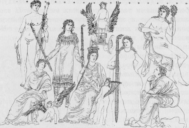 Изображение элевсинских божеств на краснофигурной с позолотой ритуальной вазе. IV в. до н. э.