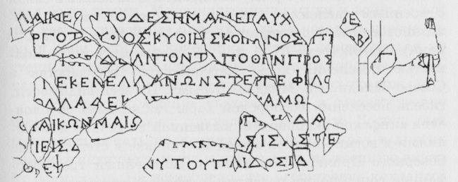 Фрагментированная надпись с эпитафией Аргота. II в. до н. э. по Ю.Г. Виноградову и Ю.П. Зайцеву