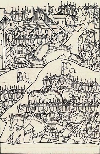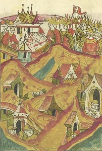 Войско Сахиб-Гирея у Зарайска, 1541 год. Миниатюра из Лицевого свода