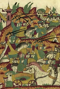 Русский ертаул преследует арьергард орденского войска. Миниатюра из Лицевого свода