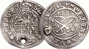 Шиллинг, отчеканенный в 1535 году, во время правления дерптского епископа Иоганна VII