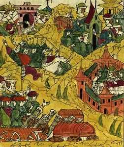 Поражение воеводы Алексея Скрябина. Миниатюра из Лицевого летописного свода