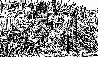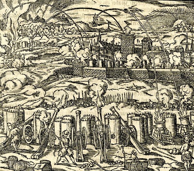 Бомбардировка города осадной артиллерией. Гравюра из «Военной книги» Л. Фронспергера, 1573 год