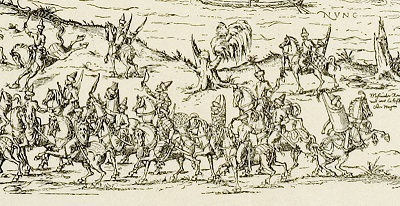 Литовские конные и пешие воины. Фрагмент гравюры М. Цюндта по рисунку Г. Адельгауэра. Нюрнберг, 1568 год