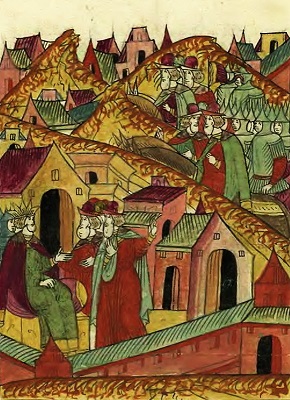 Иван Грозный отправляет воевод воевать Литовскую землю зимой 1564 года. Миниатюра из Лицевого летописного свода