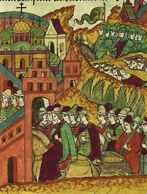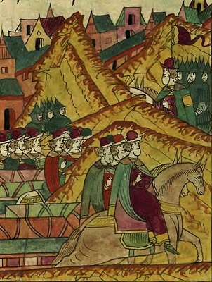 Выступление рати Шуйского из Полоцка. Миниатюра из Лицевого летописного свода