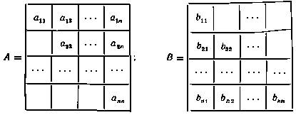 Диагональная матрица является частным случаем как верхней (А), так и нижней (В) треугольных матриц.