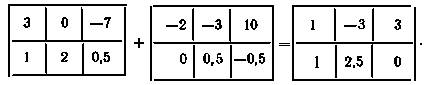 3. Сложение матриц. Сумма двух матриц А и В одинаковых размеров определяется как матрица С тех же размеров, каждый элемент которой равен сумме соответствующих элементов матриц, т.е. C = A +B, если cij = aij + bij. Пример:
