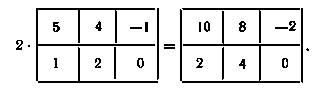 4. Умножение матрицы на число. По определению произведением матрицы А на число α (в отличие от матриц и векторов, числа часто называют скалярами) является матрица С = αА, элементы которой получаются умножением соответствующих элементов матрицы А на это число α, т.е. cij = αaij. Пример: