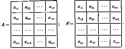 сохранении их нумерации, называется транспонированием. Полученная в результате такого преобразования матрица называется транспонированной к матрице А и обозначается At или A':